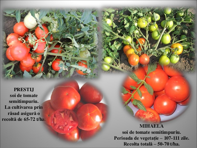 Astfel, începand cu  anul 2011 au fost reproduse seminţele de superelită, iar în anul curent are loc multiplicarea seminţelor la soiurile Mihaela, Jubiliar 60/20 şi Prestij în cantităţi suficiente pentru promovarea acestora pe piaţa autohtonă şi satisfacerea necesităţilor gospodăriilor din ţara noastră, specializate în producerea tomatelor.